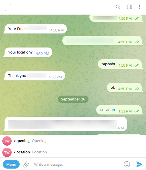 Telegram Persistent menu