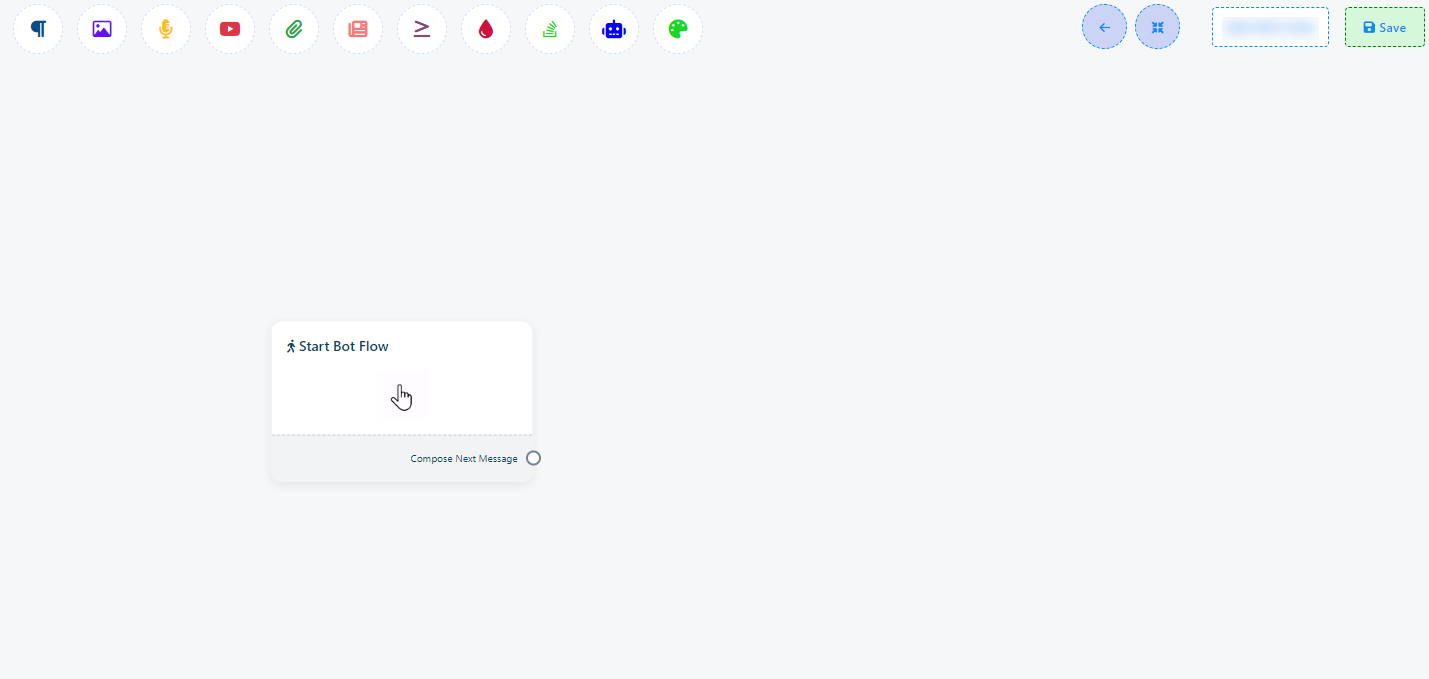 Once you`ve completed the `Start Bot Flow` setup, you`ll encounter a sockets: `Compose Next Message`, These sockets allow you to add various components and configure them.