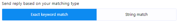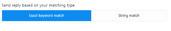 - Matching Type: You can choose the matching type by clicking on one of the two buttons provided: `Exact Keyboard Match` or `String Match`. By default, `Exact Keyboard Match` is selected. With this option, the bot will trigger only if the user`s input matches the keyword exactly. In contrast, with `String Match`, the bot will trigger if the user`s input partially matches the keyword.