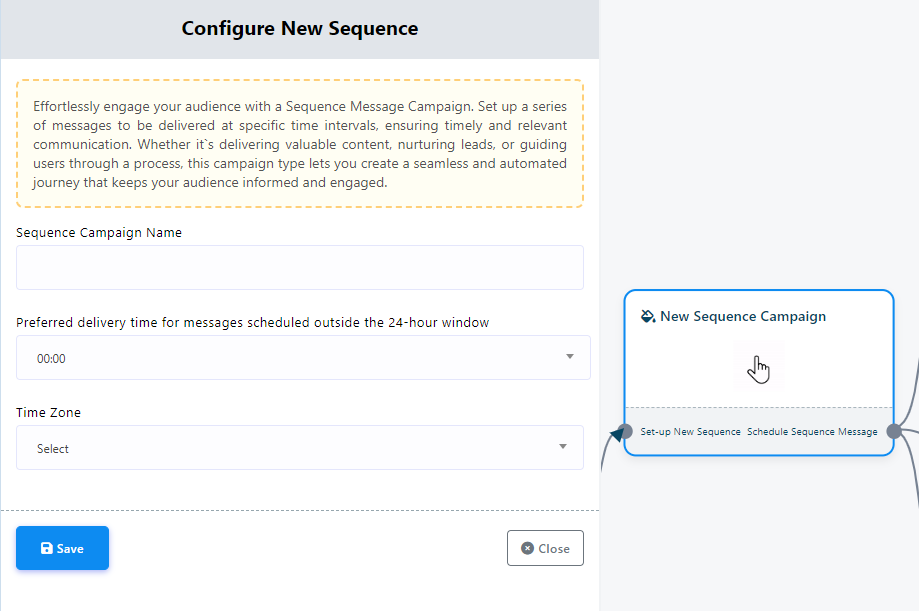 NB. When it comes to sending daily messages in a sequence, WhatsApp exclusively permits the use of pre-approved `Message templates`. In the daily sequence message WhatsApp doesn’t allow regular reply messages. Further details on creating and utilizing these message templates will be provided in this documentation.