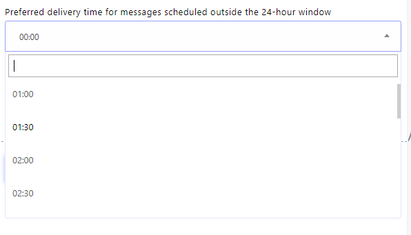 - To determine the delivery timing of your series messages, use the `Preferred delivery time for messages scheduled outside the 24-hour window` field. You can choose from preset times or manually input your preferred delivery time. To ensure that the daily message is delivered at a designated time of day. This is employed to accommodate the desired time of day for sending the message.