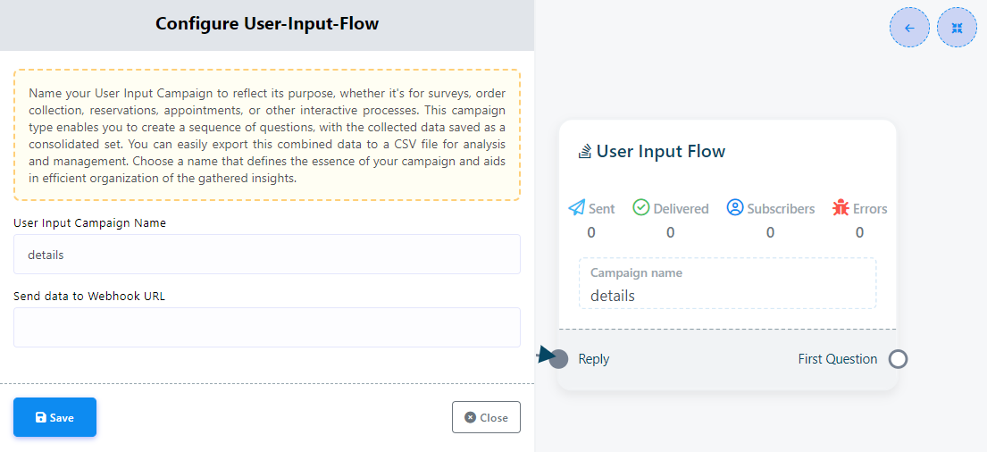 To create a User Input Flow, you`ll first need to establish a User Input Flow campaign. This campaign serves as the container for the questions you want to ask users and the custom fields where their answers will be stored.
