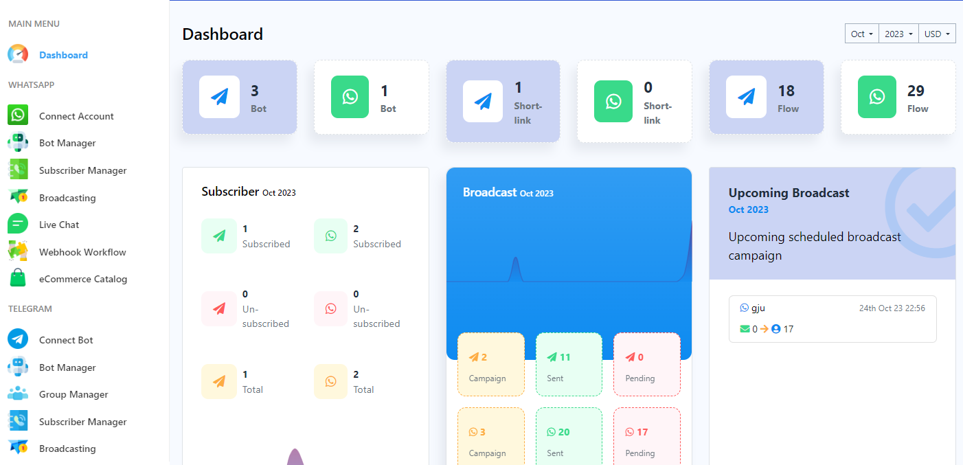 With WhatsApp Broadcasting, you can create a broadcast campaign for a segmented list of contacts (Using Label), ensuring that your messages are sent to specific target groups or all your subscribers. Messages can include text, images, videos, documents, and even links. This feature is perfect for sending announcements, promotions, newsletters, event invitations, and other essential updates to your contacts, providing a convenient and effective way to keep your audience informed and engaged.