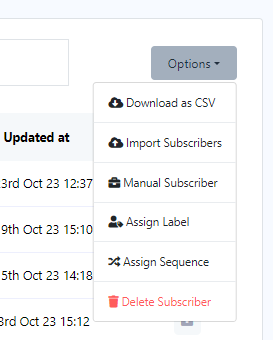 - To import subscribers, select `Import Subscribers` from the options menu.
