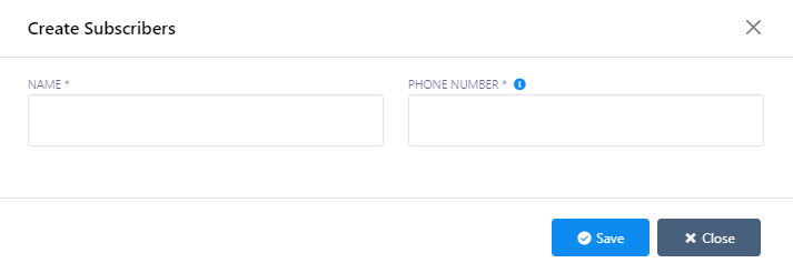 - A modal form called `Create Subscribers` will appear with two fields: `Name` and `Phone Number`.